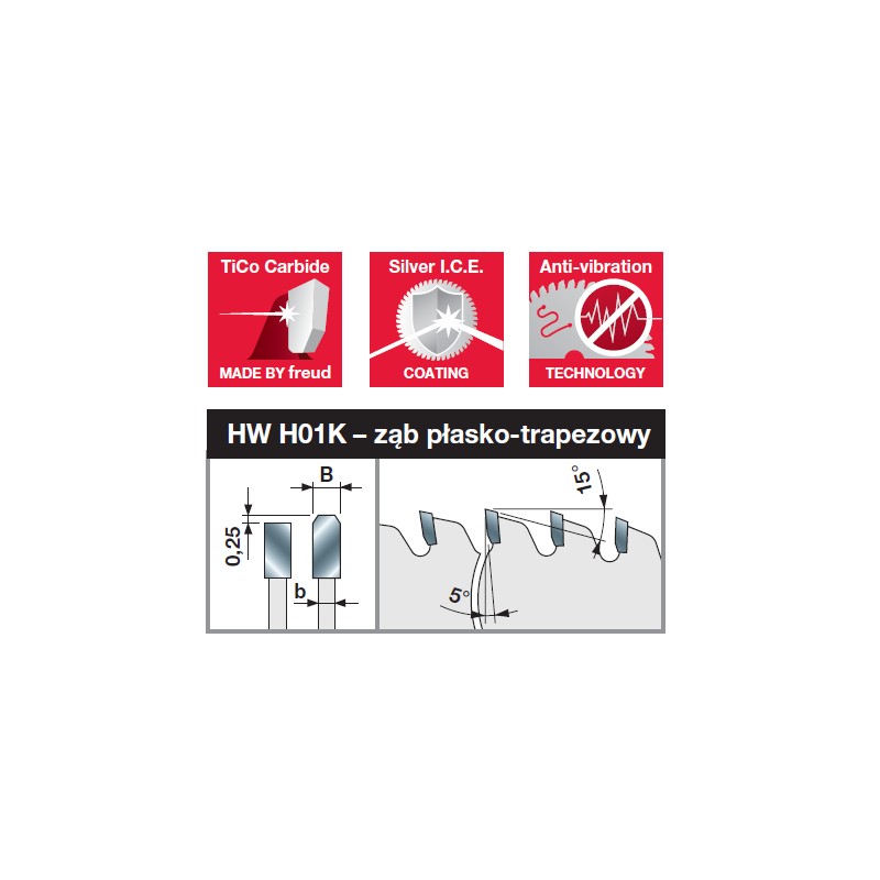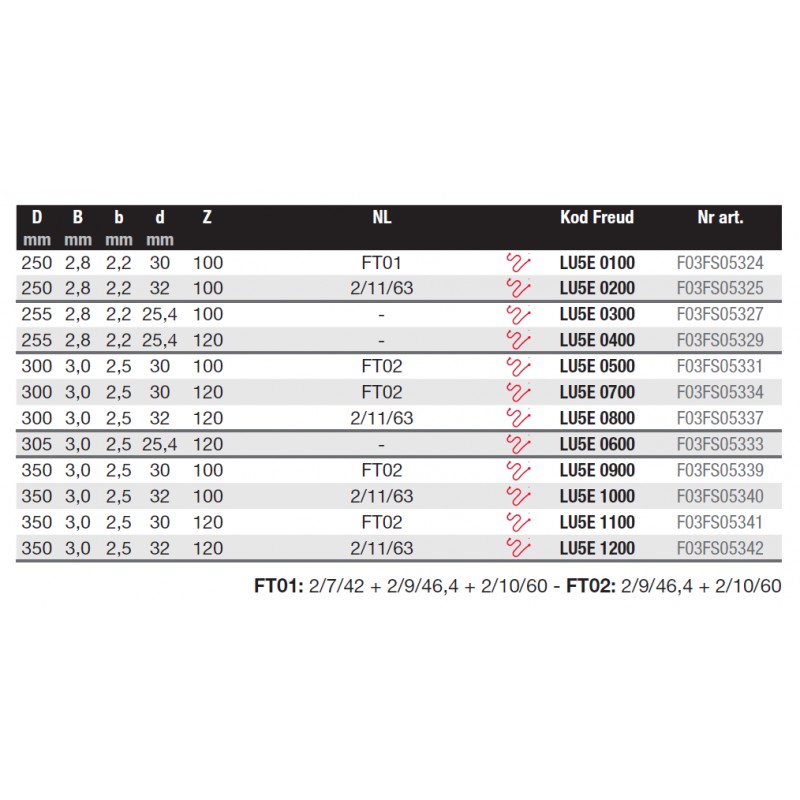 Kształt zębów | Kąt natarcia | Kod Freud | Nr katalogowy | Kod Ean |