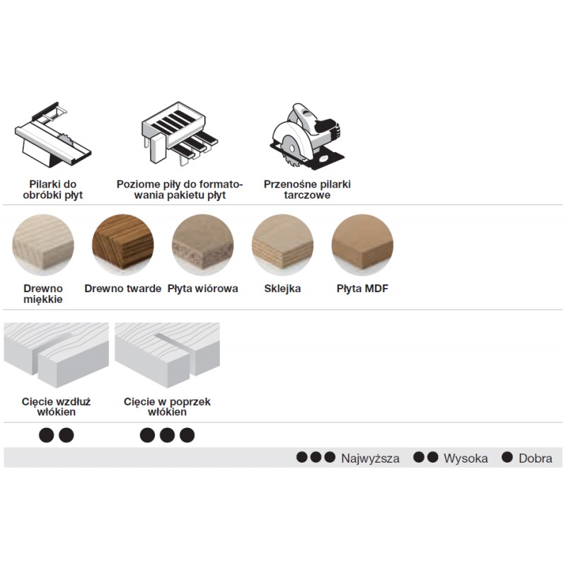 Piły do cięcia wzdłuż i W poprzek włókien.