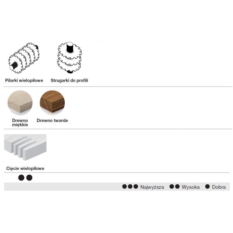 Piły do cięcia wzdłuż włókien, w przypadku których zmniejszony rzaz minimalizuje straty materiału.