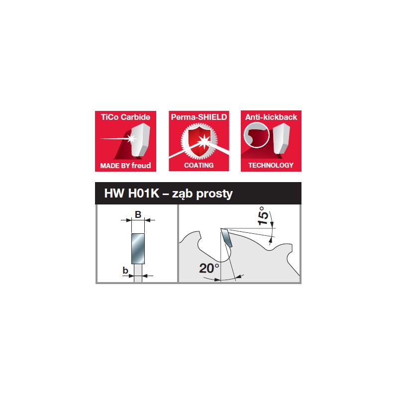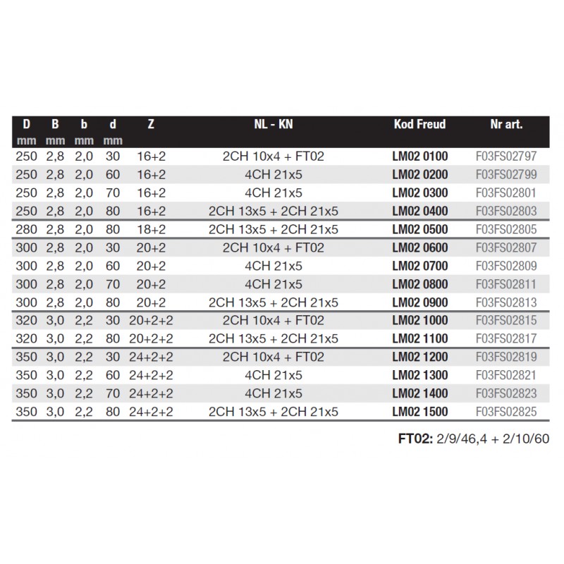 Kształt zębów | Kąt natarcia | Kod Freud | Nr katalogowy | Kod Ean |