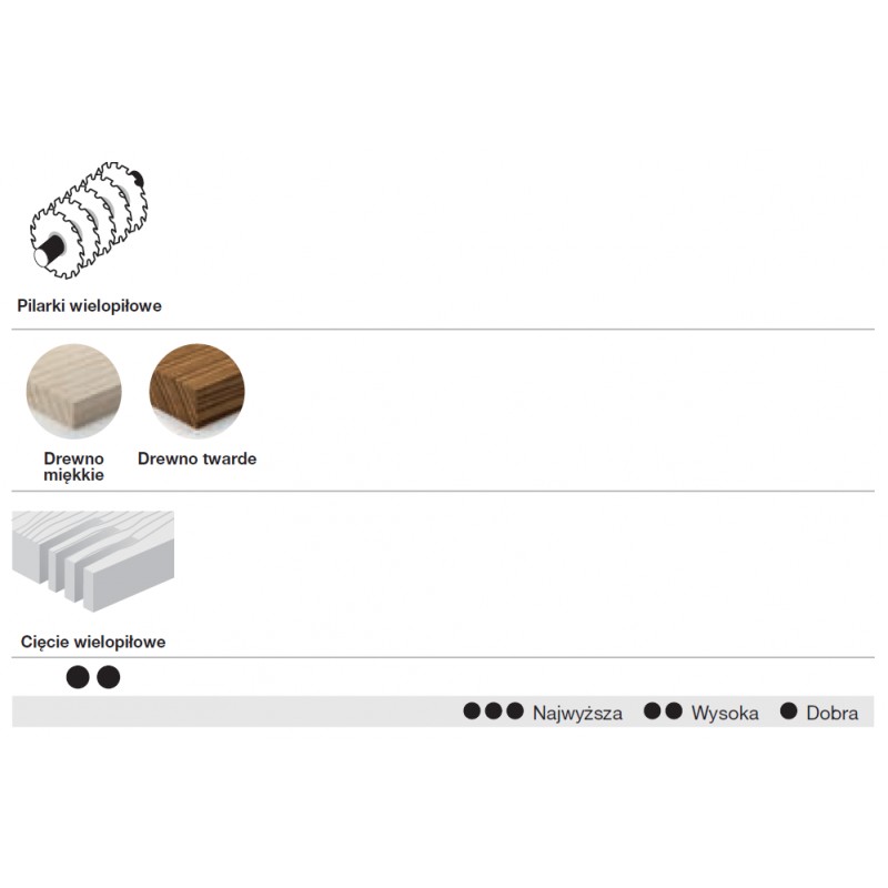 Piły do cięcia wzdłuż włókien, w przypadku których zmniejszony rzaz minimalizuje straty materiału.