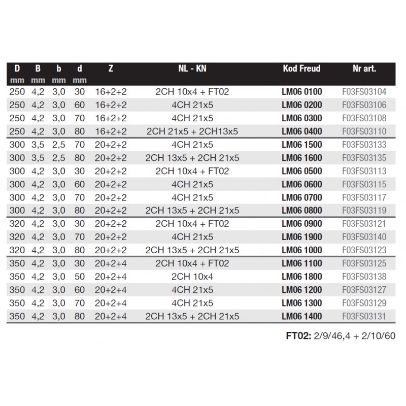 Kształt zębów | Kąt natarcia | Kod Freud | Nr katalogowy | Kod Ean |