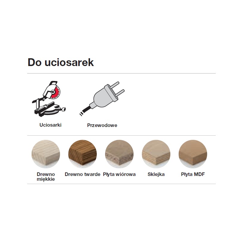 | Średnica piły | Szerokość rzazu piły | Szerokość płaszcza piły | Średnica otworu mocującego | Liczba zębów piły |