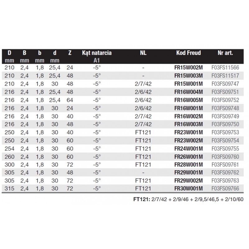 Kształt zębów | Kąt natarcia | Kod Freud | Nr katalogowy | Kod Ean |